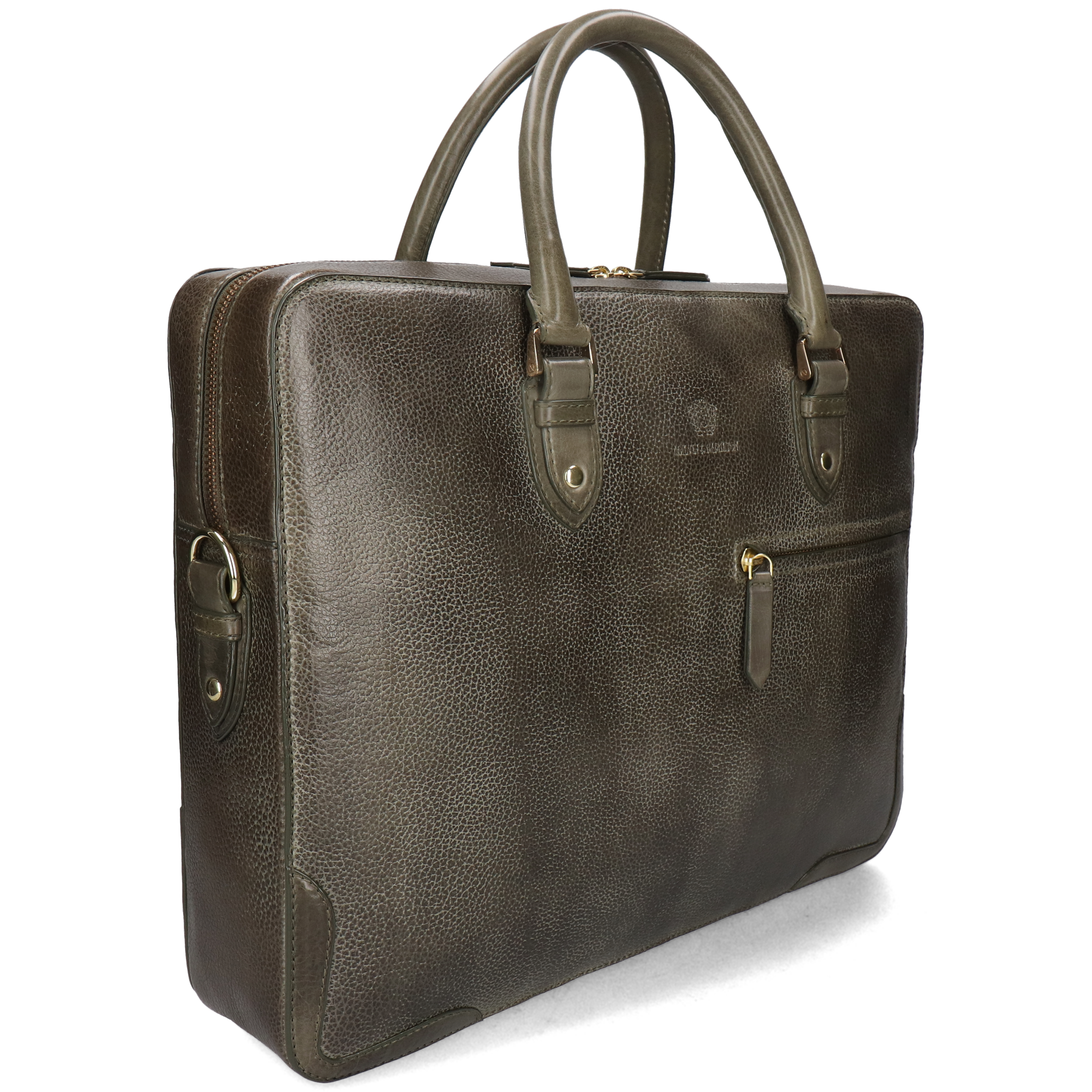 Discover the perfect balance of sophistication and functionality with the Melvin & Hamilton Cambridge briefcase. Crafted from premium khaki vegetable tanned calf leather with a refined, textured finish, this sleek and structured bag is designed for the modern professional. With spacious compartments, it easily accommodates a tablet, documents, and a laptop, ensuring you stay organized on the go. The sturdy double leather handles provide a classic handheld option, while the adjustable, detachable strap allows for comfortable crossbody wear. Accentuated with gold-tone hardware and a secure zippered pocket, this briefcase is both stylish and practical for work, meetings, or business travel.
