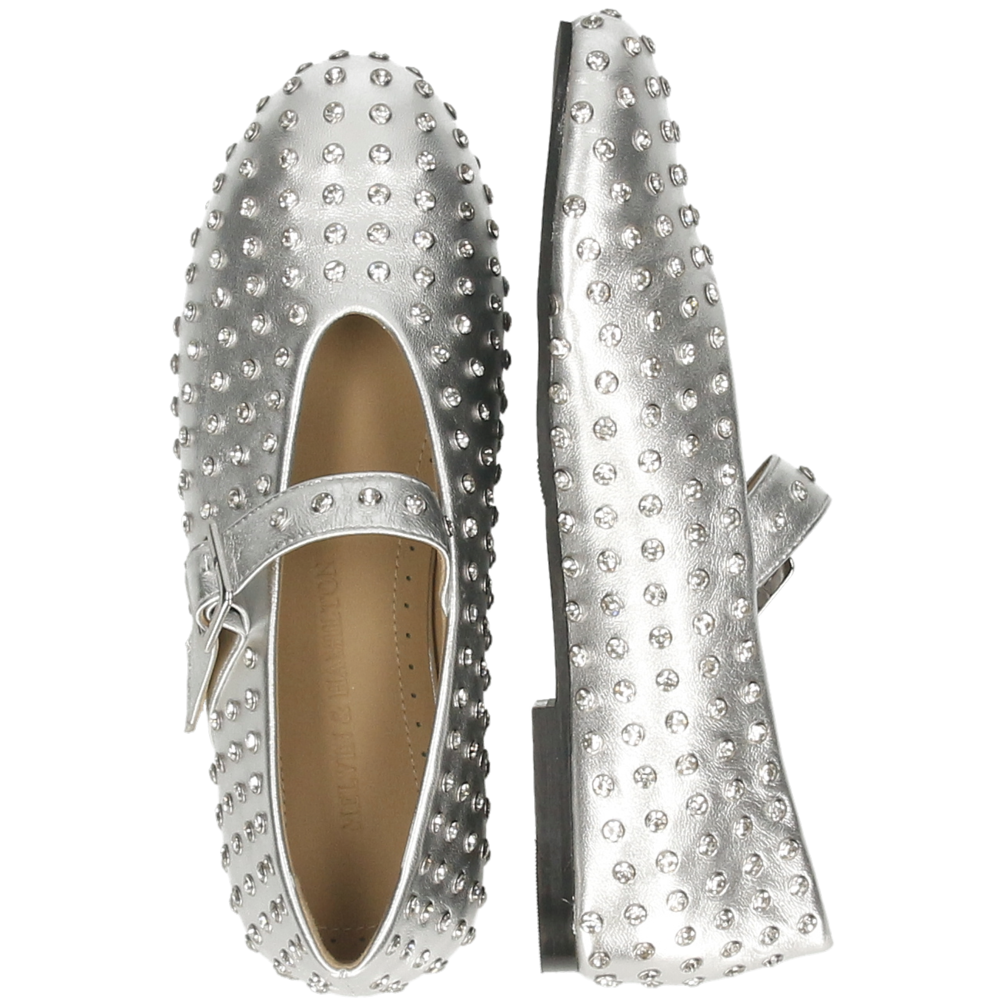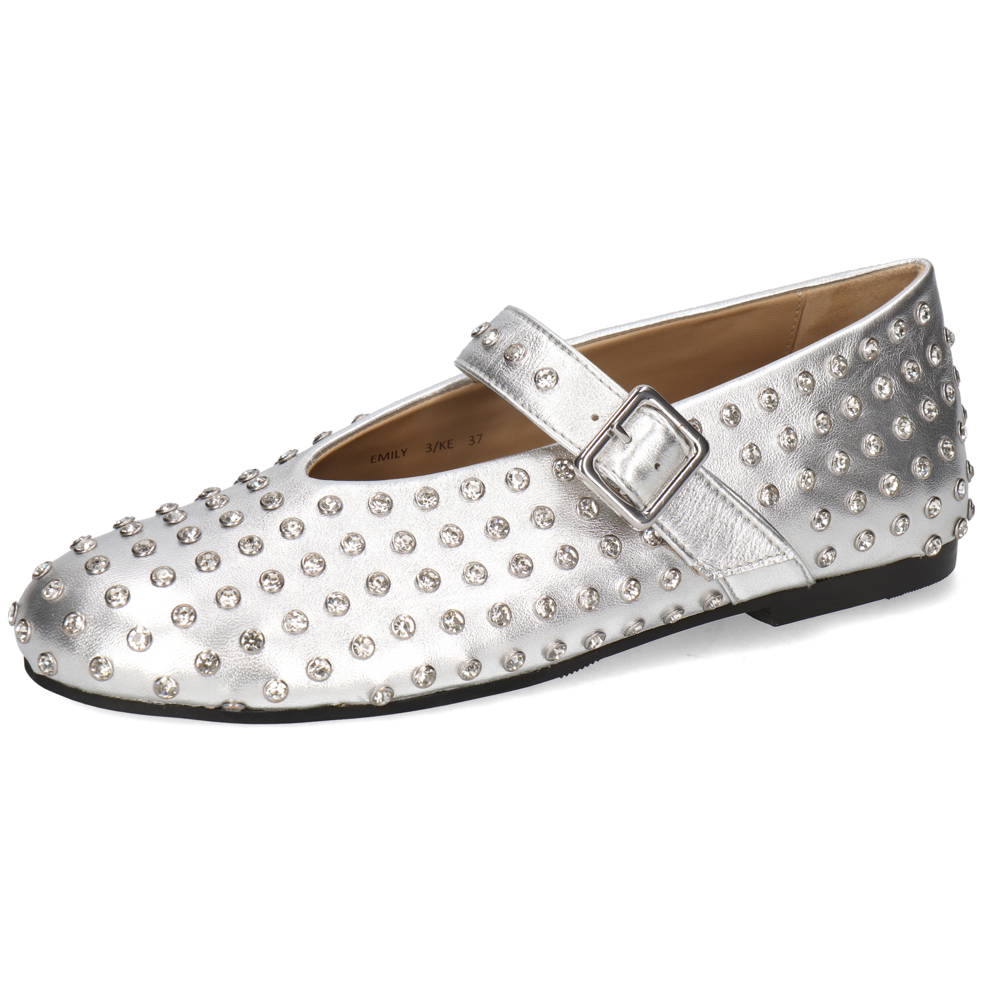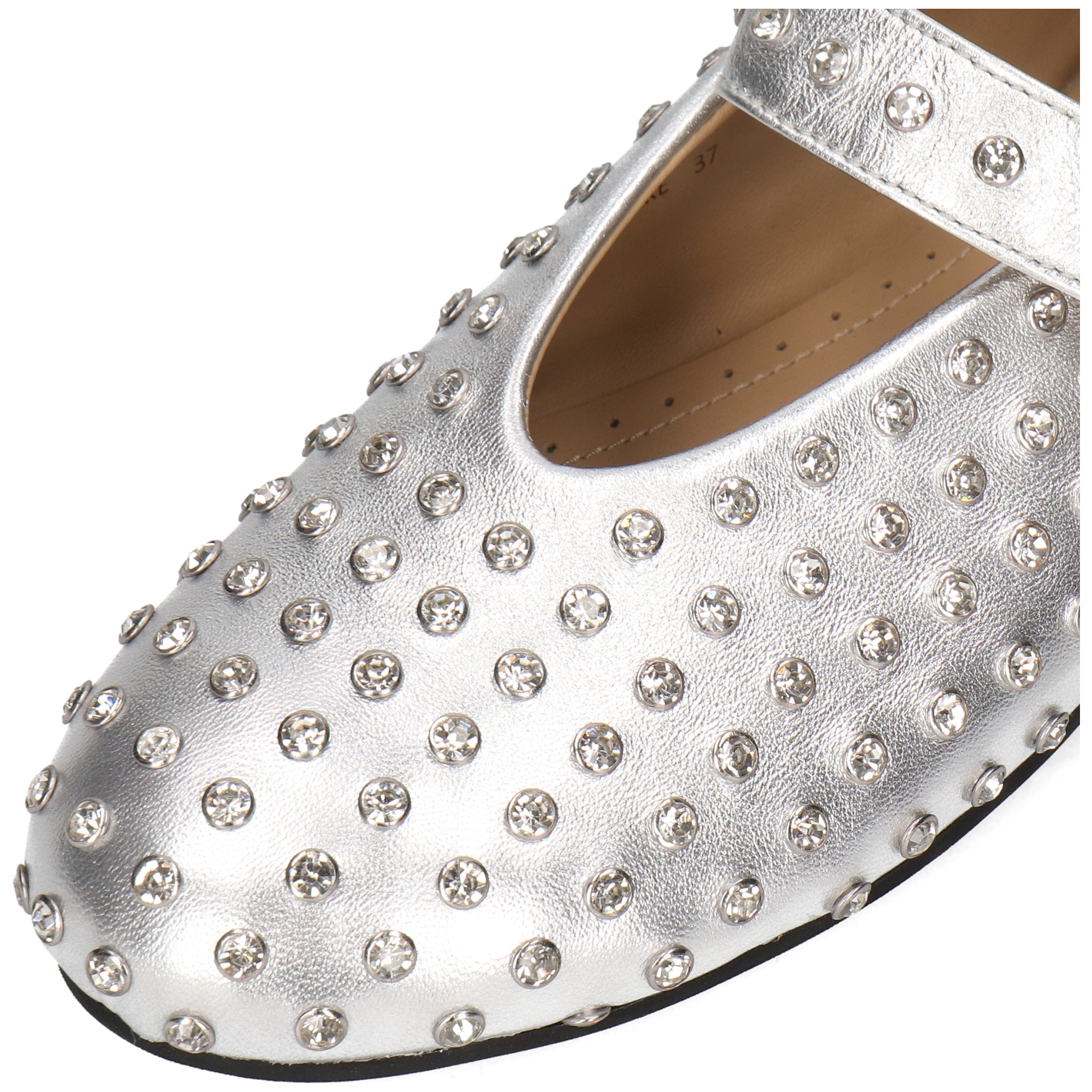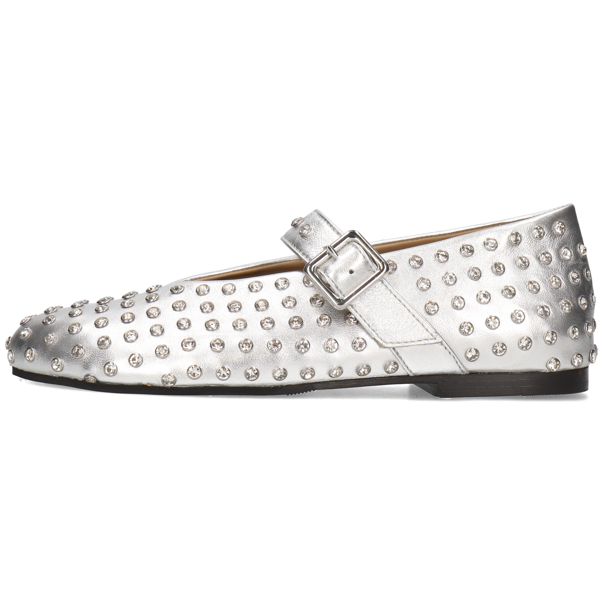 The iconic Mary Jane strap with an adjustable buckle ensures both elegance and a secure fit, while the all-over crystal studded design adds a glamorous edge to your look. Built with a comfortable leather sole and soft leather lining, these flats provide lasting comfort without compromising on style.