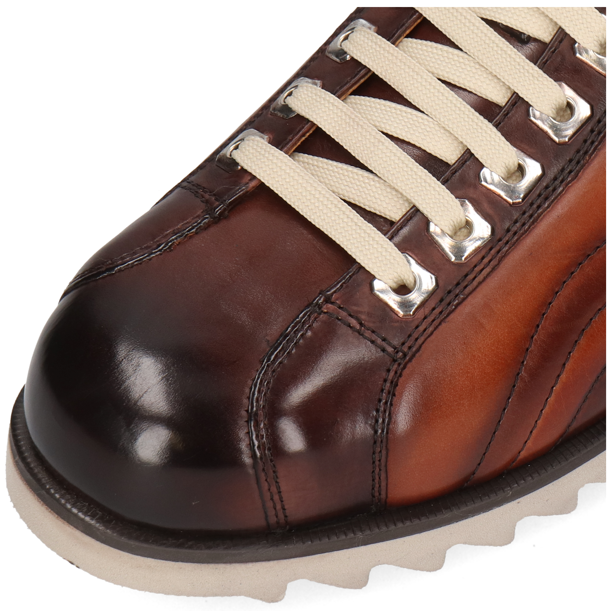 Smooth leather: wipe with a damp cloth, then dry. Apply a small amount of nourishing cream to moisturise and prevent cracking. Once absorbed, use shoe polish for extra shine or to revive colour. Use shoe trees and rotate pairs to let them rest. Avoid alcohol-based products.