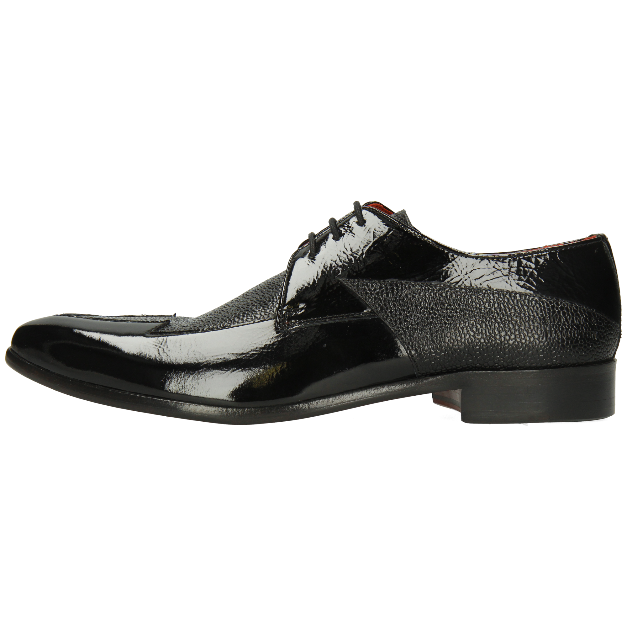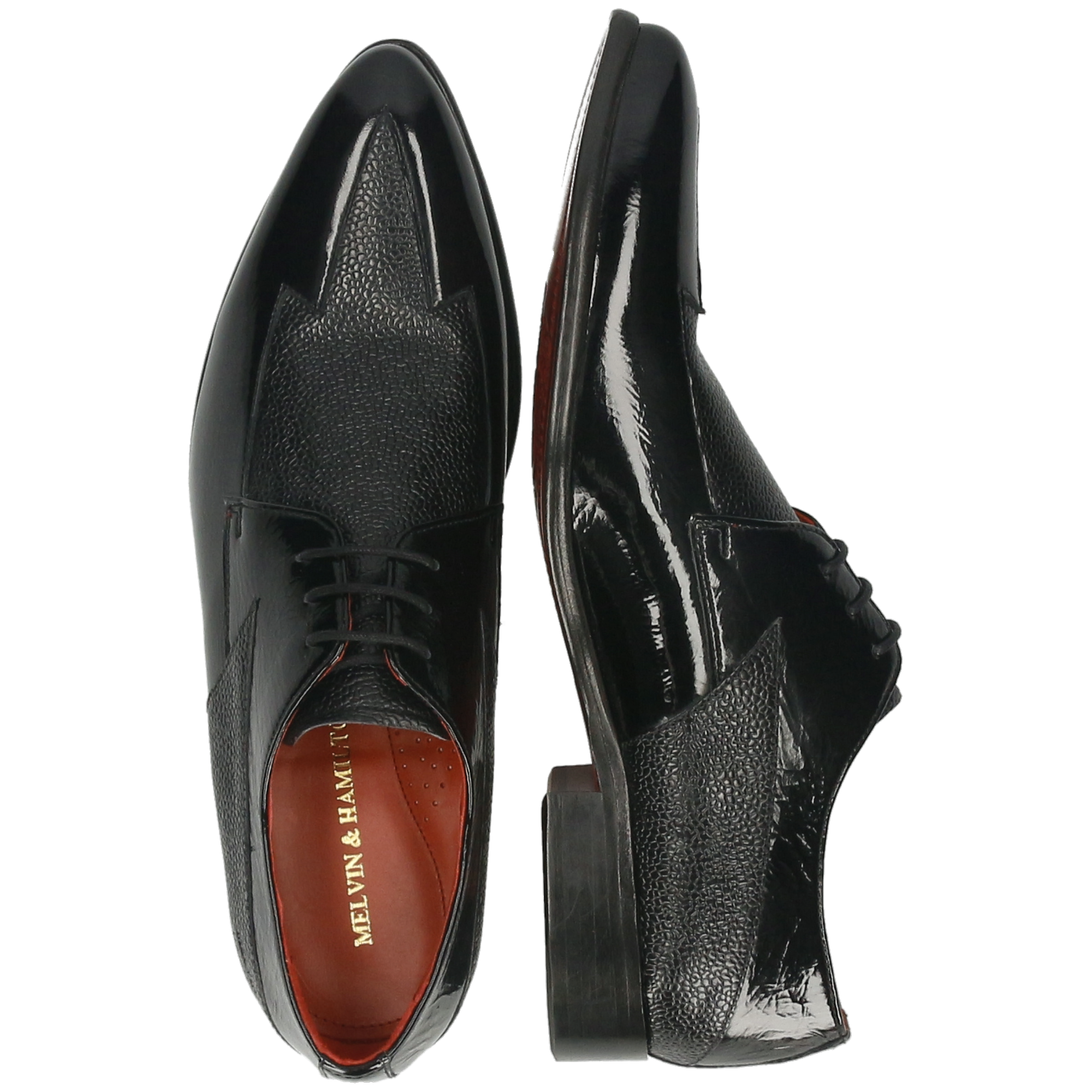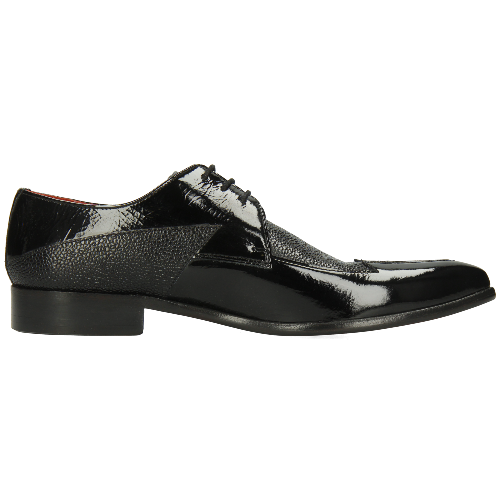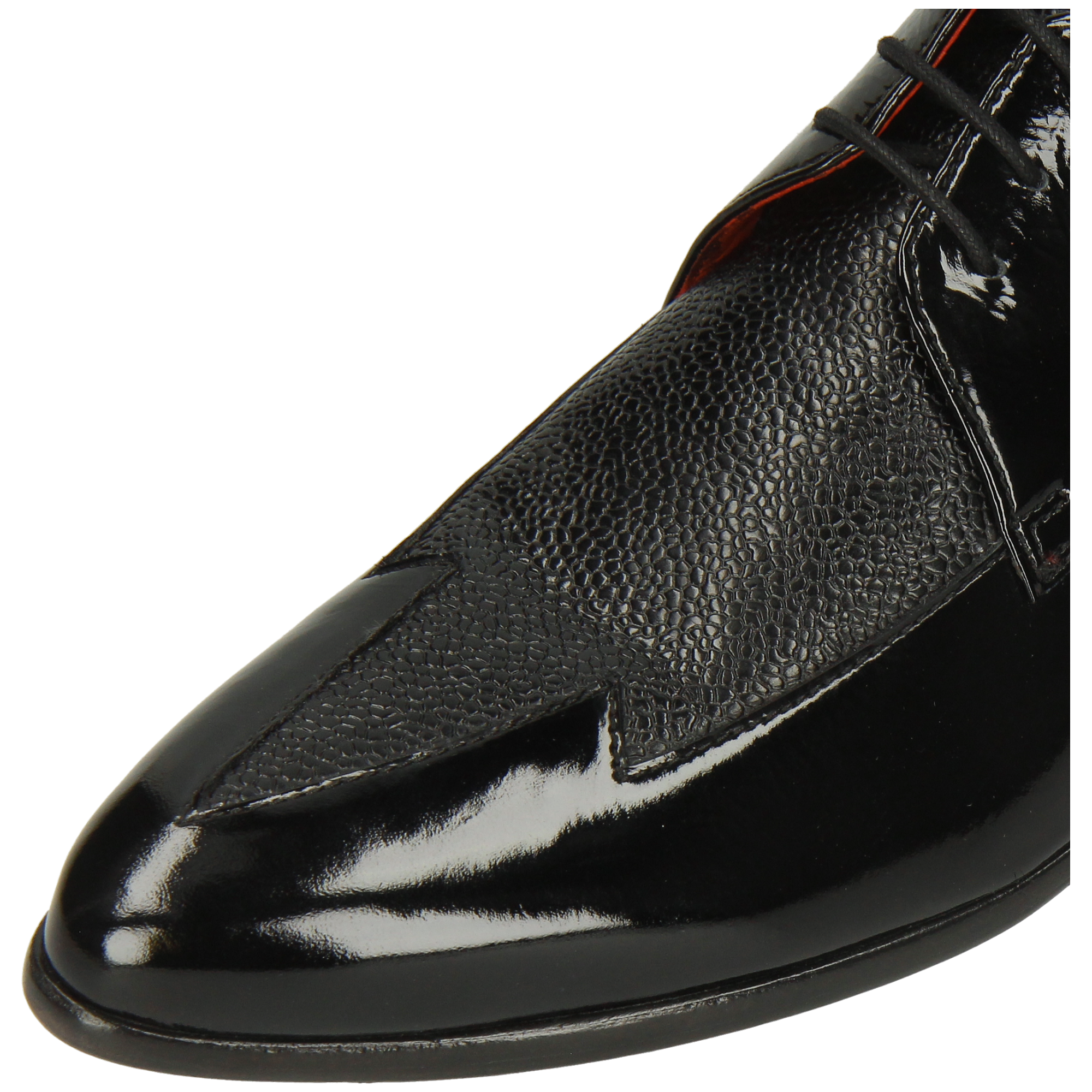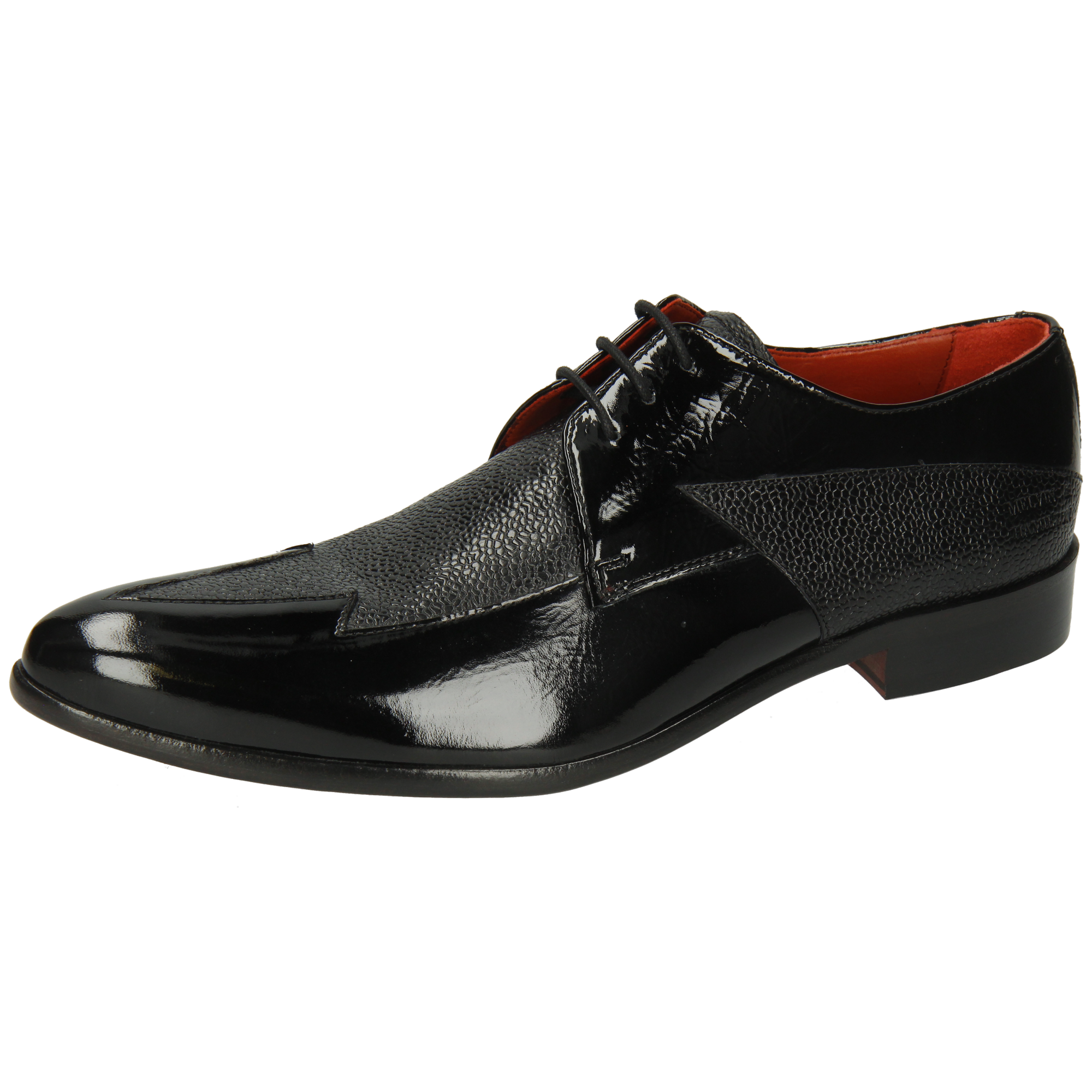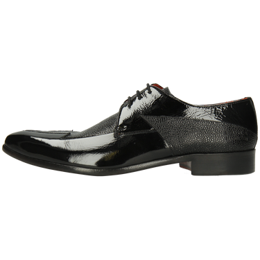 Smooth & patent leather: care for each material separately. Wipe smooth leather with a slightly damp cloth, let dry, then apply a small amount of neutral leather cream. Wipe patent leather with a soft, dry cloth and polish lightly to restore shine. Use shoe trees. Avoid rain, heat and alcohol-based sprays; do not use cream or wax on patent parts.