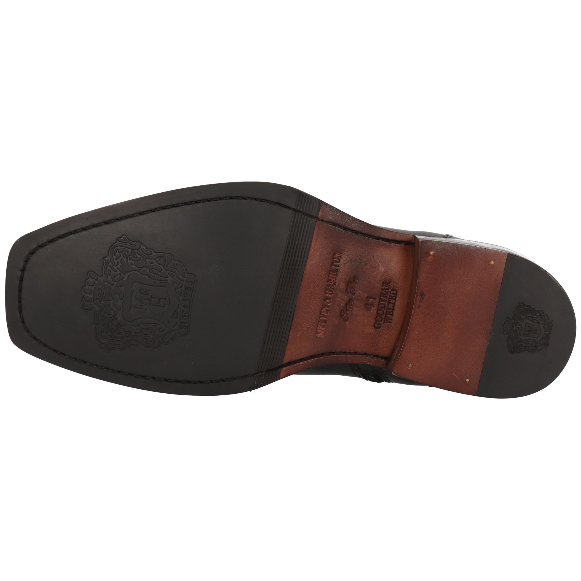 Goodyear welted is a construction method which involves two stitchings. The first stitch joins the welt, the upper and the insole; the second one links the sole with the welt.
